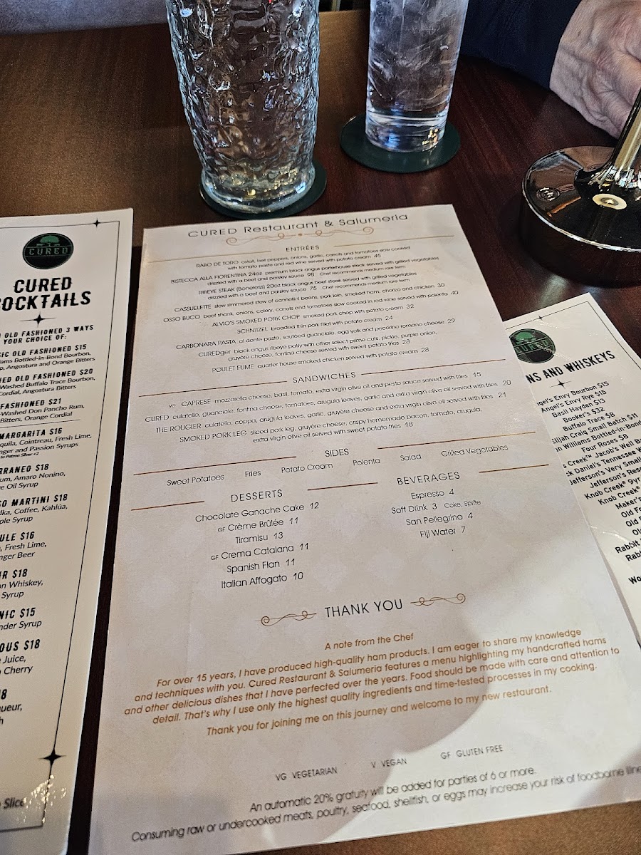 Wrap up your meal with decadent desserts, including the rich Chocolate Ganache Cake or Tiramisu, ensuring a satisfying conclusion to your dining experience. With its inviting ambiance and attentive service, CURED is perfect for any occasion, promising an unforgettable gastronomic adventure.